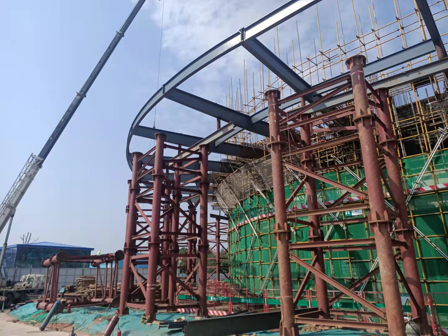 淮州新城三级综合医院建设项目,于2021年10月9日正式完成第一区段大悬挑钢结构雨棚安装,并通过建设、监理、设计、质检站的验收。