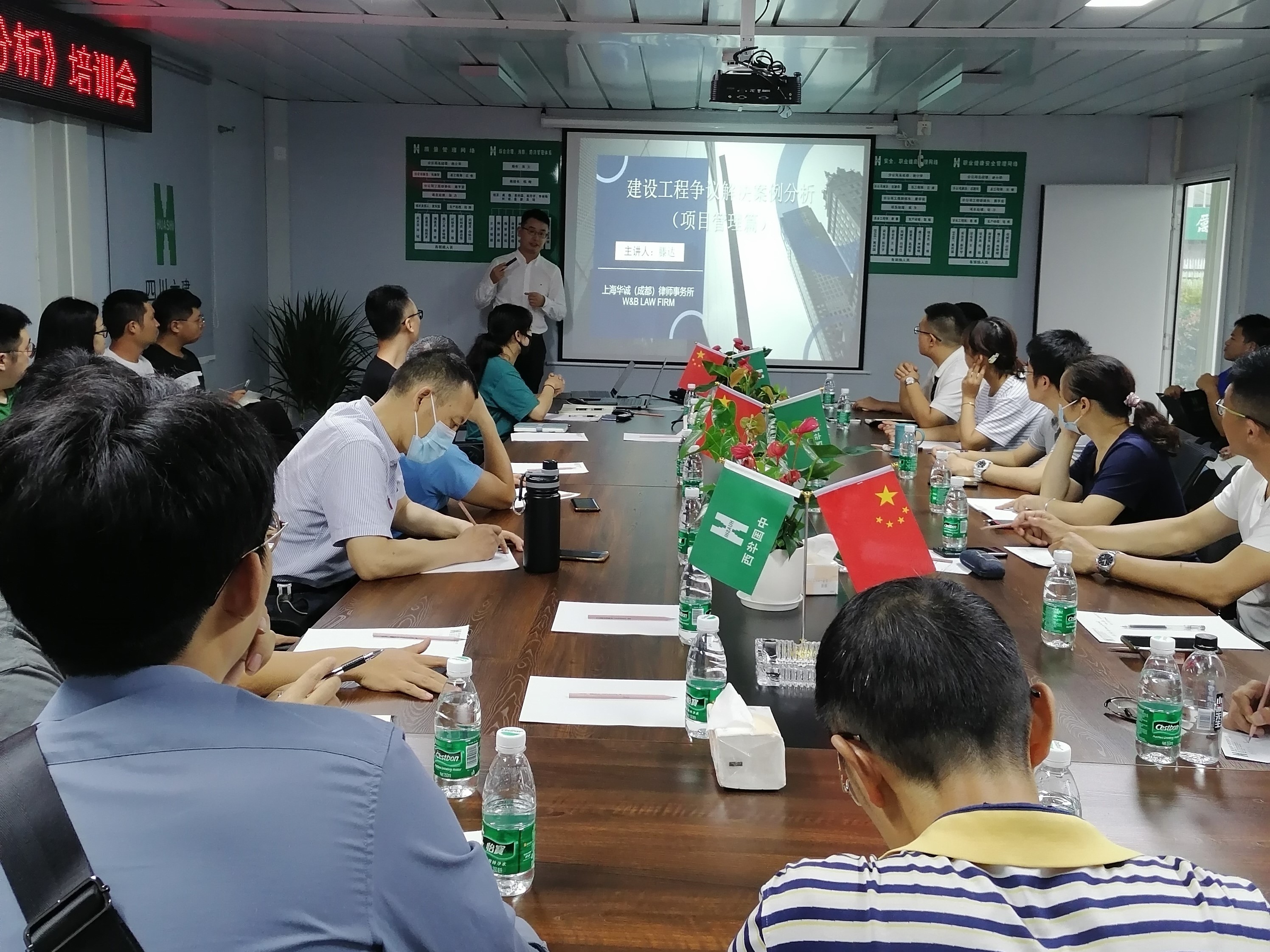 8月25日,六分公司(安装)在青白江铁路港木材物流仓储基地项目举办了《建设工程争议解决及案例分析》专题讲座。本次讲座特邀上海华诚(成都)律师事务所滕达律师进行授课。六分公司(安装)领导班子、部门负责人、项目经理、青年骨干共40余人参加本次讲座。