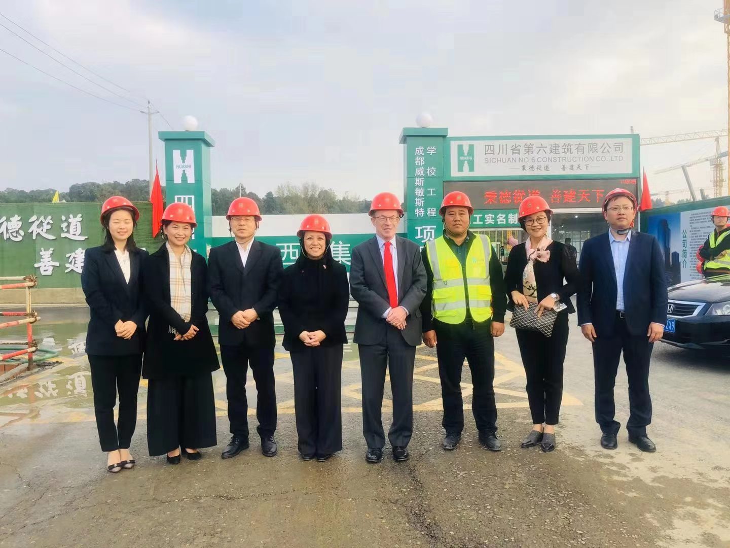 近日,英国驻重庆总领事馆总领事艾佩诗女士(Ms Cecille EI Beleidi)、双流区政府副区长王小乐一行调研由三分公司承建的威斯敏斯特学校项目。一踏进成都威斯敏斯特学校项目,总领事被繁忙的工作场景所吸引,建设现场热火朝天、井然有序,钢筋混泥土支柱拔地而起,庞大的校园轮廓已勾勒成形!绿树环绕的浅山背景,形成了成都威斯敏斯特学校独有的天际线,环绕学校的小河,岸边的芦苇和不时略过的飞鸟,已然形成一幅绿色、自然、生态的学校画面。总领事详尽询问了项目的建设计划和执行情况,由衷地赞叹成都威斯敏斯特学校日新月异且优质高效的建设进度。目前,成都威斯敏斯特学校项目正按照既定目标顺利推进,部分区域地下室底板施工已完成,1-A、1-C教学楼,2、3号学生公寓基础施工已完成,预计2020年9月建成开学。