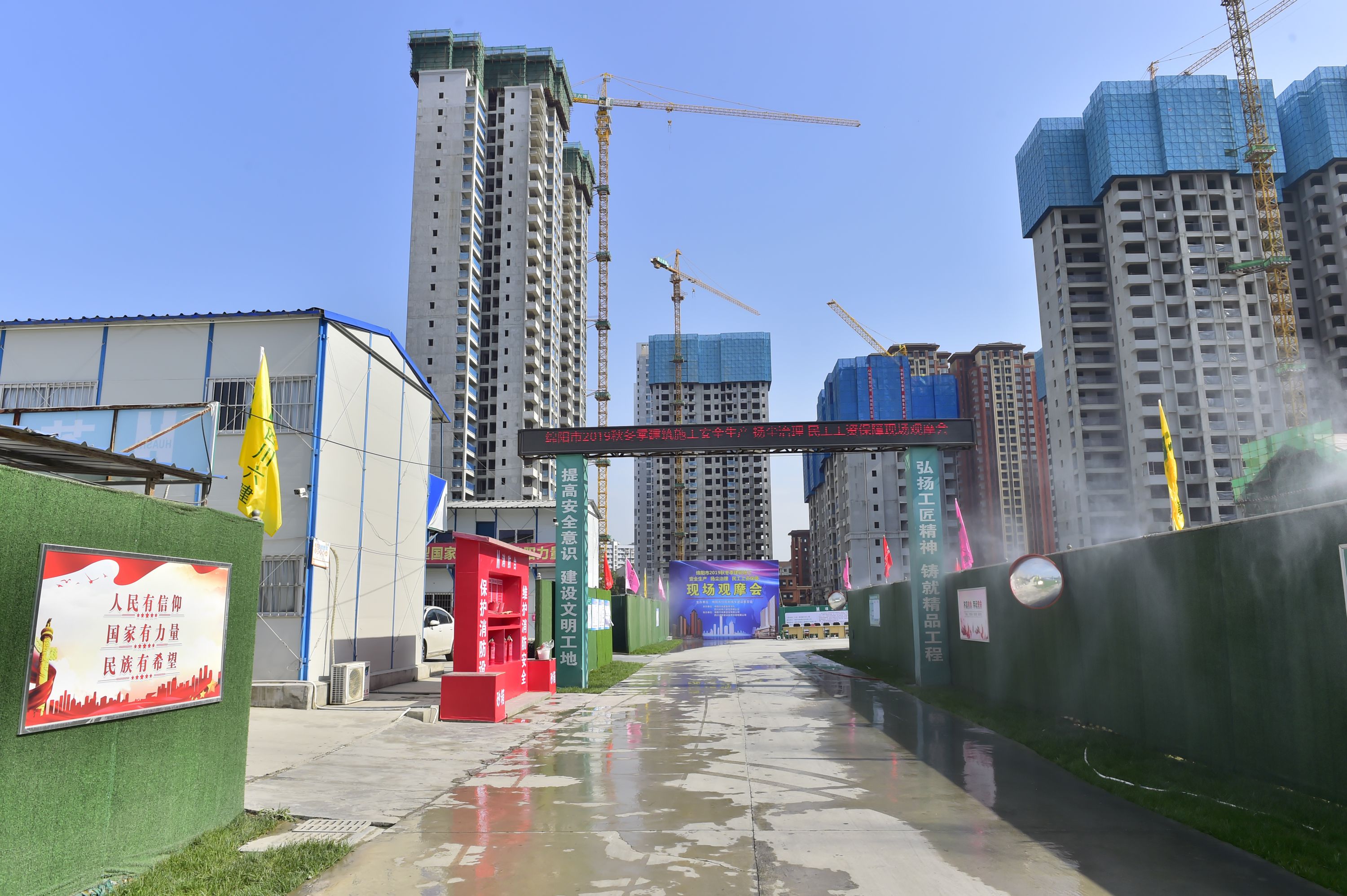 近日,由绵阳市住建委、绵阳市城建监察支队及公司共同举办的绵阳市2019秋冬季建筑施工安全生产扬尘治理和民工工资保障现场观摩会在由一分公司承建的绵阳九洲• 跃进路16号项目举行。绵阳市城区在建工地项目代表、市区行政主管部门负责人等共计600余人参加此次现场观摩会。