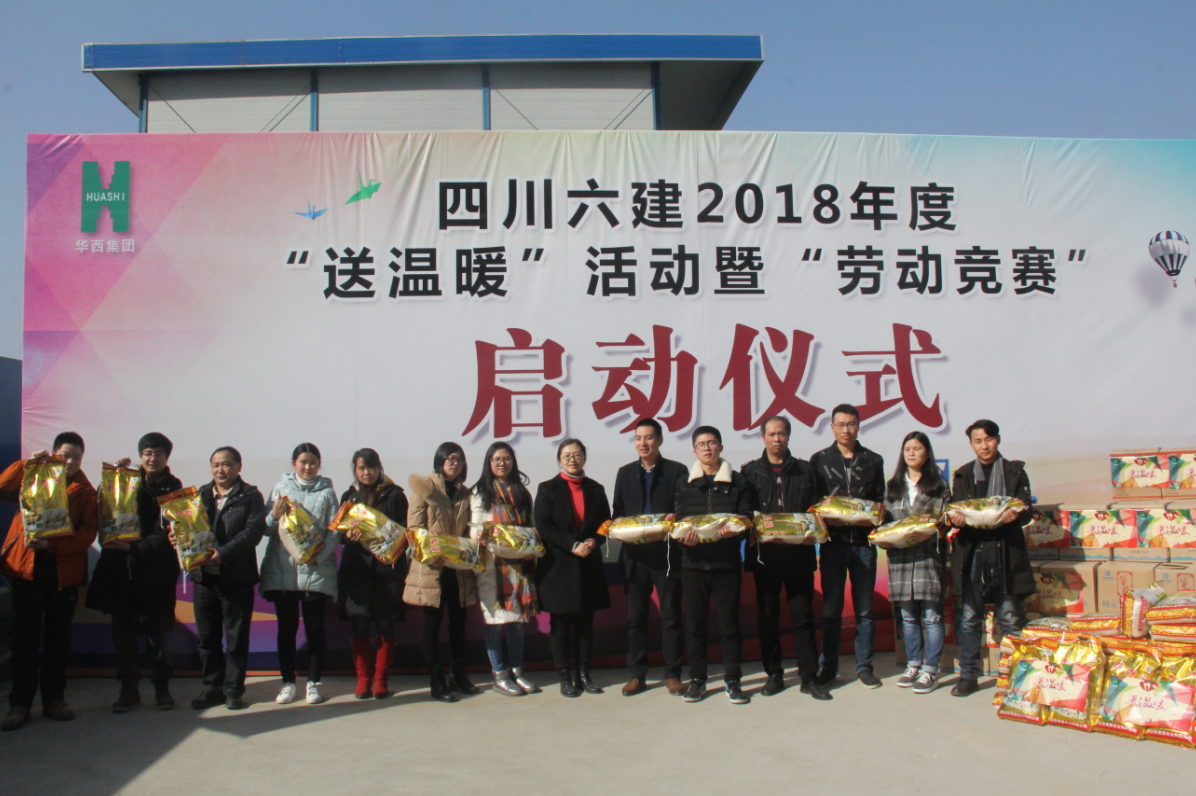 为深入贯彻十九大精神,推动工会工作的进一步“下落基层”,脚踏实地的解决广大职工的实际困难,推动公司健康发展。近日,公司工会在“成都恒大上林苑首期一标段主体及配套建设工程项目部”开展公司成都片区集中“送温暖”活动暨“2018年度劳动竞赛启动仪式”,公司工会主席赵尤蕾、各分公司工会主席、项目代表共计60余人参加此次活动。