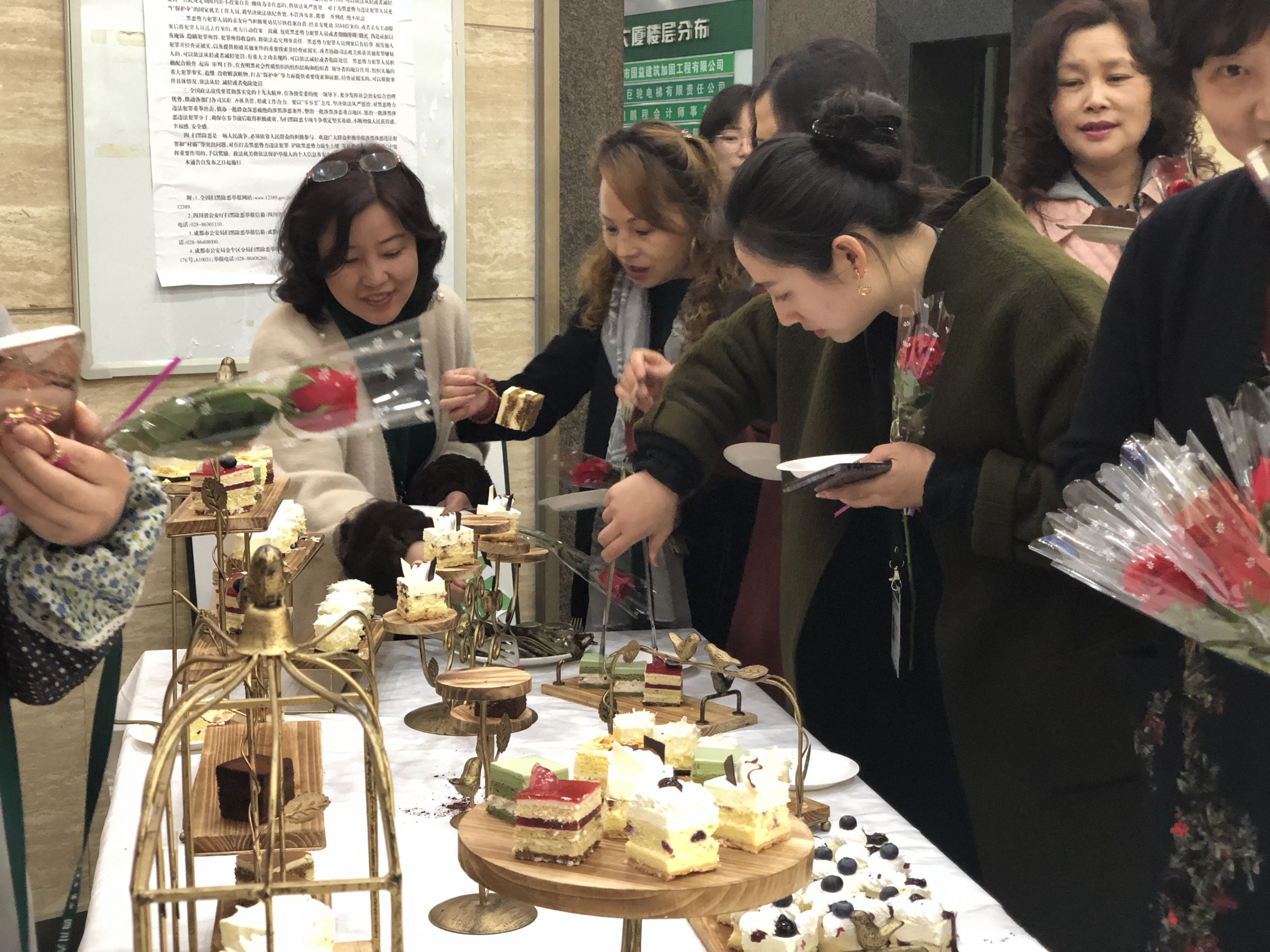 在“向女神致敬!”赠花仪式上,精心布置的“甜品台”上,一块块精美的“甜品”和一朵朵娇艳的“红玫瑰”,让每一名进入公司的女职工感受到了节日的氛围,在赠花的同时,公司工会主席还向每一名进入公司的女职工送上了最美好的祝福。在“三圣乡”活动现场,土整公司工会主席代表土整公司党政工向每一位女职工致以了节日的问候和祝福,对她们在公司发展过程中做出的成绩给予了充分肯定,并期望女职工发挥好半边天的作用,为公司下一步的发展做出更大的贡献!