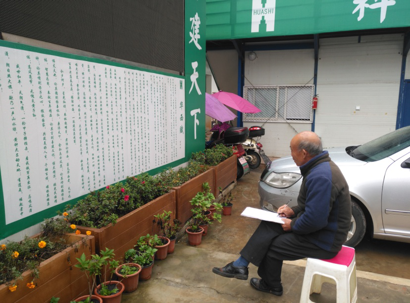 “年轻人,这个字念啥?”在市政分公司泰华锦城项目部,一位穿着朴实,头上窜出了几丝银发的师傅,一手拿着本子,一手拿着一支笔,坐在项目部那块写满了“华西赋”的广告面前。