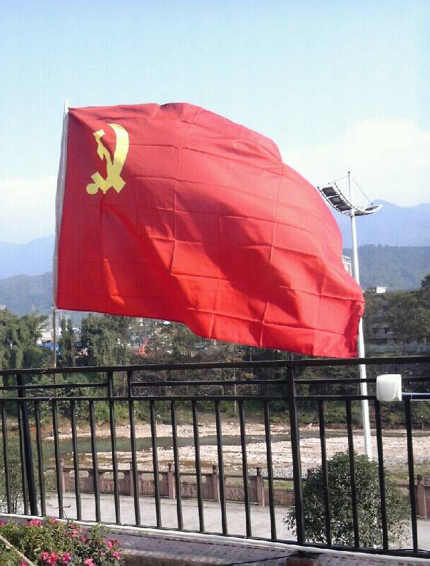 党旗飘飘,飘扬在这片充满希冀的土地上;党员同志争做先锋,用苦干实干的双手重建起这座美丽又坚强的城市。